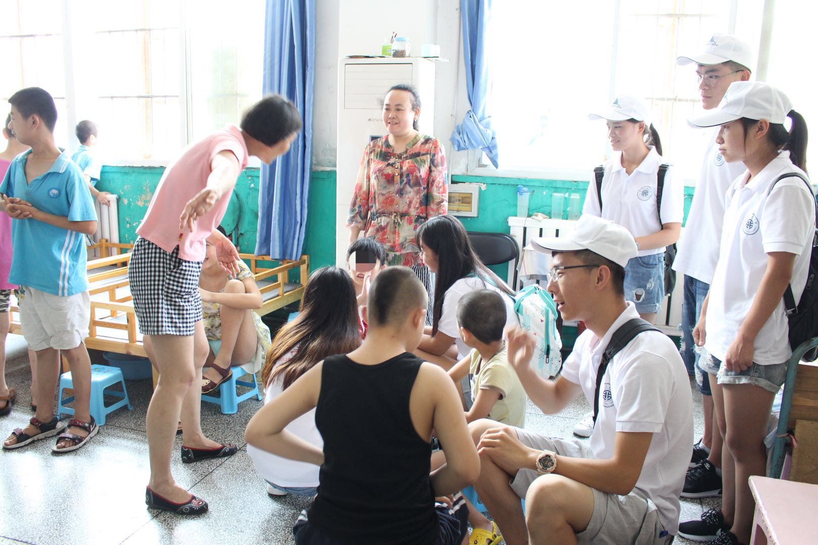 实践团带上早已准备好的书本、画笔看望这群特殊的天使们,团员们陪同孩子们一起画画,并与孩子们进行交流互动。在与孩子们的接触中,实践团成员发现每个孩子都有各自的喜好,比如涂色、听歌等等,并且能够沉浸在自己喜爱的事物中露出灿烂笑容。最初的见面孩子们并没有表现出与普通孩子不一样的地方,随着接触的深入,实践团成员们越发感受到这些孩子们的与众不同之处,但是又一样有着纯粹的眼、无邪的笑、玲珑的心和赤子的灵魂。