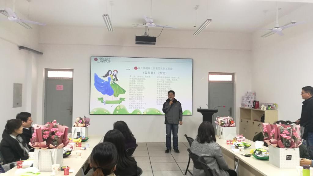 活动开始,副经理强天伟代表全院男教工给大家表演了一段诙谐的陕西快板《说红苕》以助兴。随后,何华、王玲、罗萌等8位女教工依次与在场的老师们分享了朗读的快乐。优美的语音、饱满的感情,让在场的每位老师感受到了心灵的温润。
