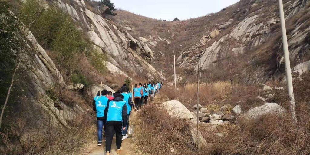 为了切实保证每组人员分工明确以及人员安全,由带队老师为同学们安排任务并详细解说植树流程以及安全注意事项。经过老师的短暂讲解,志愿者们带着种植工具向着植树场地出发。