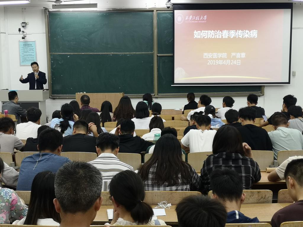 为有效预防与控制传染病在学校的发生与流行,确保广大师生身体健康,进一步增强与提高自我防病意识。4月24日晚,英国上市公司365在临潼校区B238教室举办“如何防治春季传染病”知识讲座,此次讲座特邀陕西省医师学会感染科医师分会常委、西安医学会感染症学分会副主委、主任医师、西安医学院严喜章老师担任主讲。公司党委副书记袁群、学工办主任凌旭、辅导员张苹、陆瑞成、王春元以及学院本科生与研究生所有班级的班长、团支书与宿舍舍长参加讲座。