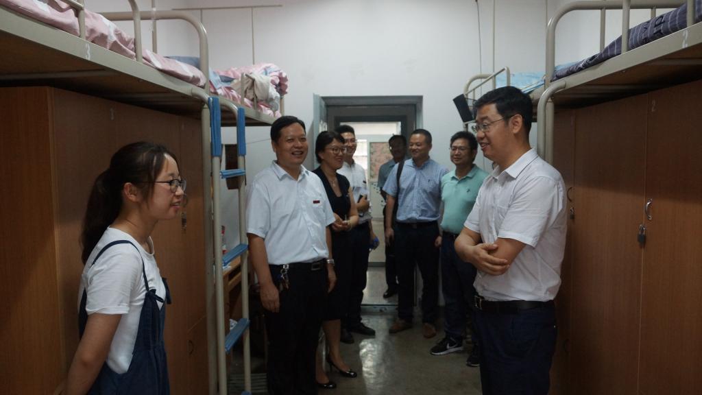 王进富一行先后来到三号公寓楼的女生宿舍和五号公寓楼的男生宿舍。每到一处,王进富亲切地与新生交流,询问他们入学后的感受,叮嘱他们有困难找老师。走访中,王董事长及学院负责人非常关心新生对新环境的适应程度,详细询问了同学们来自哪里、饮食上是否适应、生活上能否习惯、入学后的感受及个人爱好等情况。他们希望同学们能认真学好专业知识,利用好各种锻炼能力的机会和平台,提高素质,增长才干。同时他们叮嘱同学们要遵守校纪校规,注意人身和财产安全。