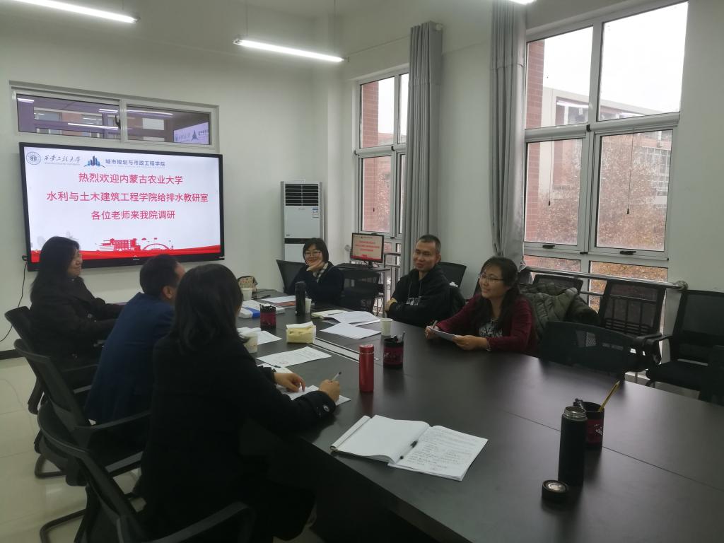 2019年12月17日下午,内蒙古农业大学水利与土木建筑工程学院给排水教研室主任梅小乐一行3人来访公司,调研给排水科学与工程专业本科生培养方案相关问题。市政工程系余嵘、宋经华、崔心水和张瑞峰等教师参加了调研交流会。双方就专业发展和建设、专业特色凝练、培养目标制定、课程体系构建、核心课程内容构成、实践环节组织与实施、人才培养模式与方法等方面进行了深入的交流探讨和经验分享。