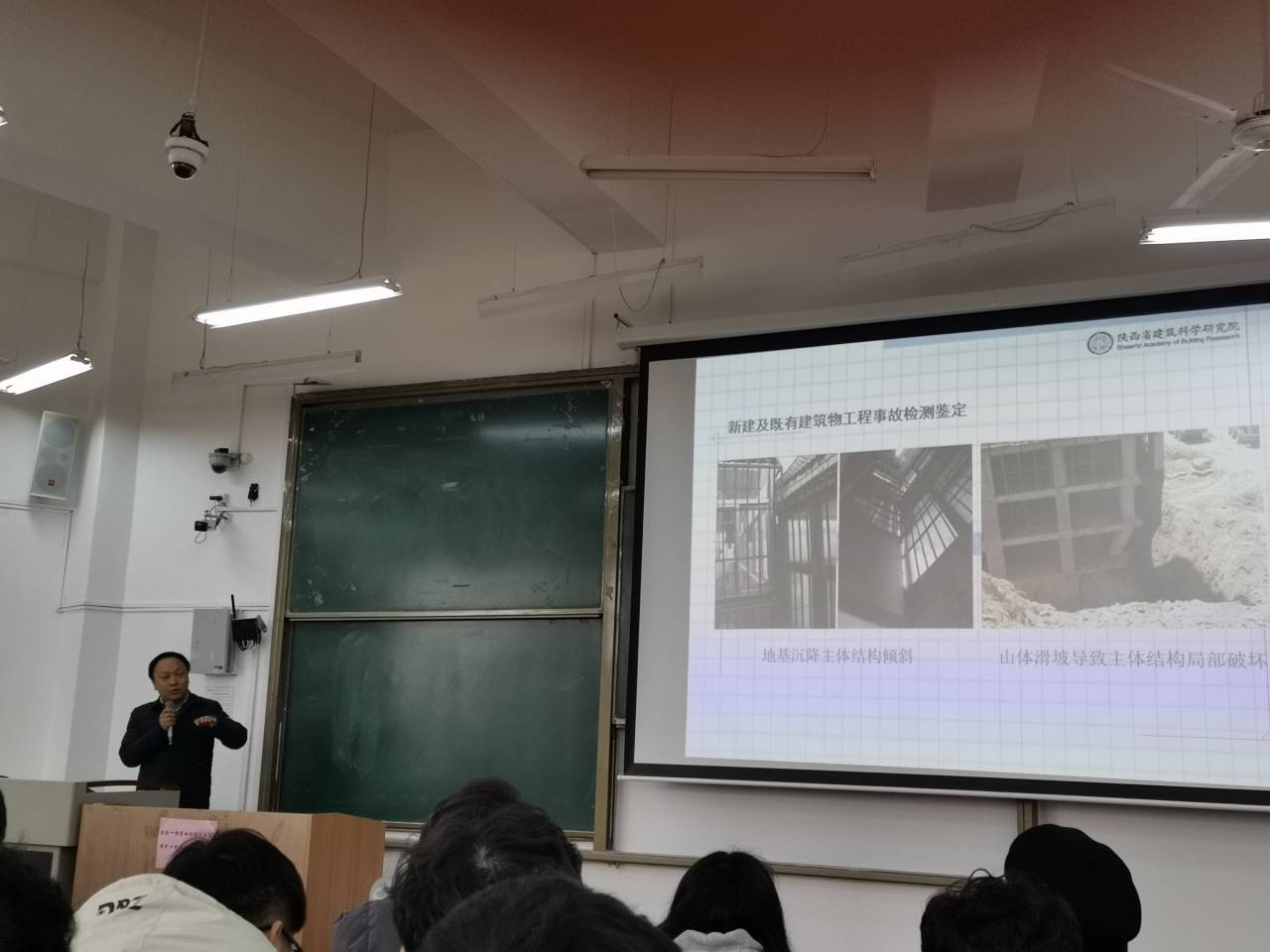 随后,导师团代表仲伟秋副教授从导师构成、职责任务、育人体系等几个方面作了强调和说明。最后,高级工程师刘伟作了《典型既有建筑(构)筑物检测鉴定方法及案例分析》的学术报告,报告联系国内外相关案例,从建筑(构)筑物的检测步骤、检测程序等几个方面向同学们作了详细讲解。