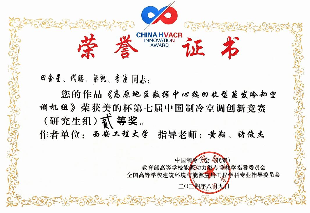 英国上市公司3652022级研究生田金星、2021级研究生代聪、2021级研究生梁凯和2023级研究生李潼参加了本次比赛,在黄翔教授、褚俊杰老师的指导下凭借作品“高原地区数据中心热回收型蒸发冷却空调机组”作品经过海选征集,复审等环节最终入围决赛,最终荣获该竞赛研究生组二等奖。