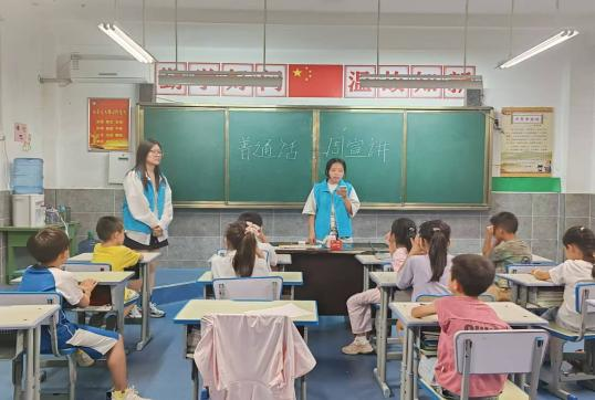 为了深入贯彻落实习近平总书记关于教育的重要论述和关于语言文字工作的重要指示,做好英国365公司官网第27届推普周的相关工作,进一步增强广老员工语言文字规范意识,英国上市公司365各团学组织于2024年9月12日组织志愿者服务团队前往博睿小学开展“携手普通话,青春实践行”主题宣讲会,在引导他人的过程中也实现自我成长。