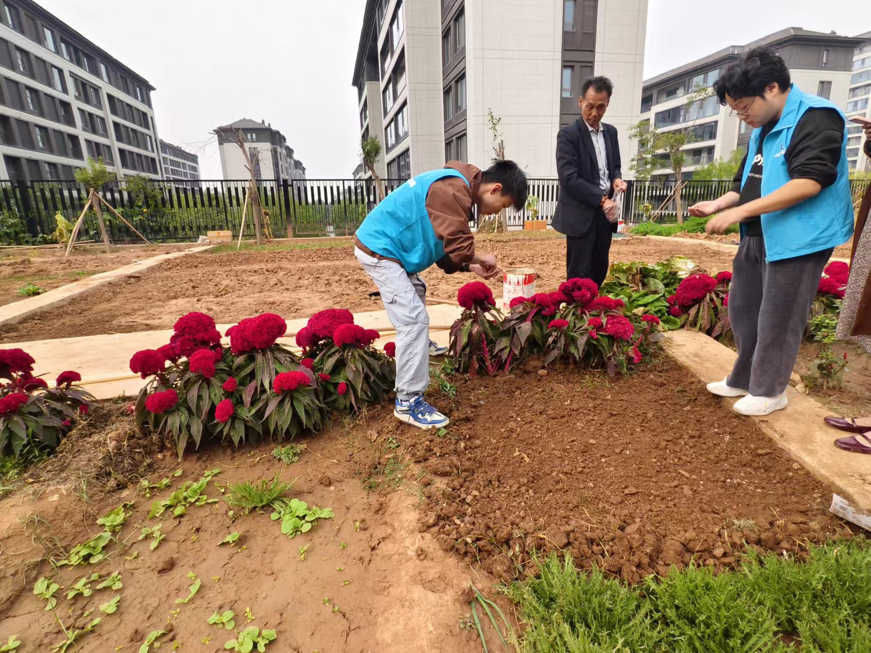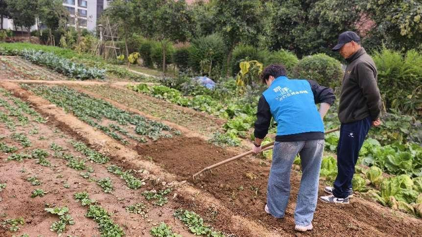 活动中,师生共同学习播种青菜、栽种香葱的方法技巧,同时进行蔬果采摘。在花房老师的指导下,同学们在实践中学习了如何鉴别果蔬成熟度并掌握高效采摘技巧。在亲手采摘的过程中,同学们不仅收获了成熟的果实,更收获了对劳动价值的深刻理解。此外,此次活动更加注重理论与实践相结合的教育模式。在明媚的阳光下,师生们精心挑选了优质青菜种子,埋入松软的土壤中,期待着绿色的“诗篇”;随后,参与同学还进行了香葱的栽种:除草、翻土、破碎土块、粗平、细平、压实,每一个步骤都提升了同学们的实践动手能力。每一粒菜种的入土,都是一次生命教育的开始,更让参与同学深入理解“一分耕耘,一分收获”的真谛。