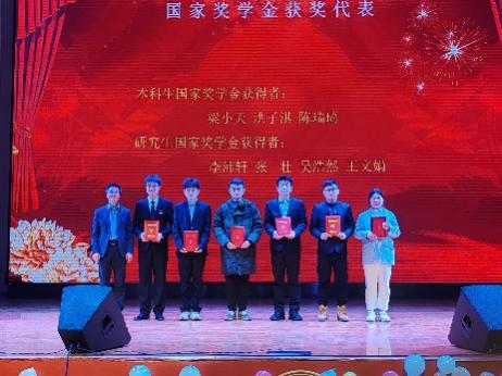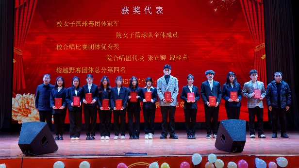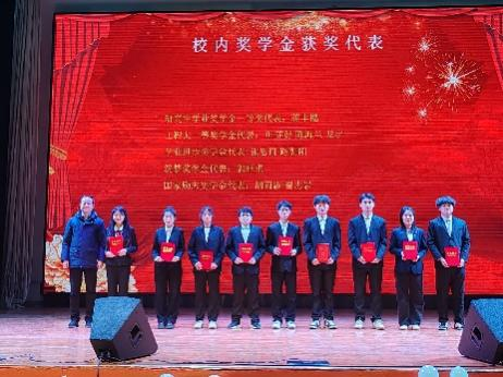 颁奖环节,与会的嘉宾们为奖学金获奖代表、文艺体育竞赛获奖代表、社会实践及科技竞赛个人(团队)获奖代表、先进集体和优秀个人代表分别颁发荣誉证书,并与获奖代表们合影留念。