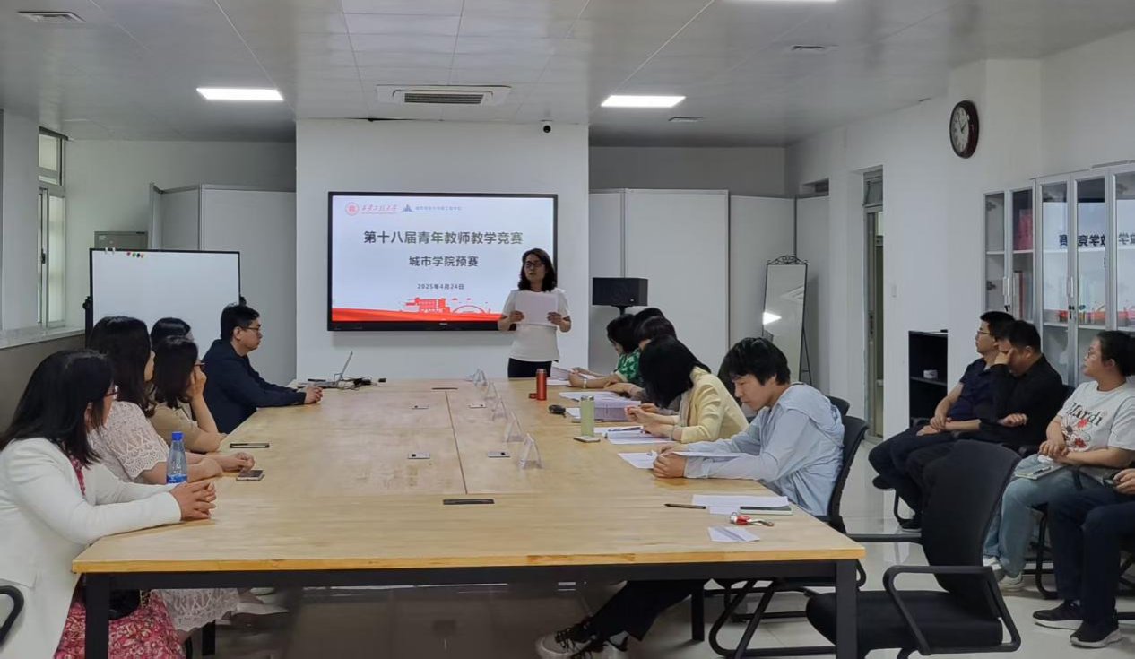 比赛开始前学院副经理王丽娟就比赛要求、比赛流程及比赛纪律做简要介绍,同时王丽娟老师强调:“教学竞赛要坚持以德立教、以赛促改,将课程思政巧妙融入教学过程。”随后,参赛教师分两组展开角逐,涵盖建筑环境与能源应用工程、市政工程、土木工程、景观艺术、力学等多个学科领域。