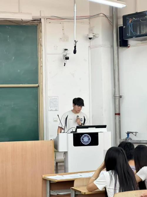 会上,2024年四支优秀暑期社会实践团队代表依次分享了他们的实践经验和成果。沙漠织绿实践团的李者同学讲述了团队在内蒙古鄂尔多斯沙漠边缘开展生态研究的经历。他们通过科学探索,为荒漠化防治提供了新思路,展现了青年学子在生态保护中的使命与担当。汉江生态建设调研实践团的段凯哲同学分享了团队在陕西安康汉江流域的调研成果。他们通过水质监测和生态评估,为“母亲河”的保护贡献了专业力量,彰显了青年在生态文明建设中的重要作用。“光影拾遗,探寻洋县皮影戏”实践团的车龙吉同学介绍了团队在汉中洋县挖掘和传播皮影文化的实践历程。他们通过举办展览和宣讲活动,让非遗文化焕发新生,体现了青年在文化传承中的创新活力。“乡村振兴·青春笃行”实践团的赵志聪同学讲述了团队在陕西紫阳县助力乡村振兴的实践故事。他们从产业调研到公益课堂,用实际行动为乡村发展注入青春能量,展现了青年在乡村振兴中的实干精神。