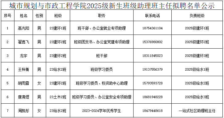 为进一步加强学院学风建设,推进学院员工“自我教育、自我管理、自我服务、自我监督”四自体系建设,做好员工“高带低”、“传帮带”工作。经员工自主申报、班级推荐、学工办考察研究,拟聘以下7位2023级优秀员工、员工干部担任学院2025级新生助理班主任和“一站式”员工社区助理班主任,公示名单如下: