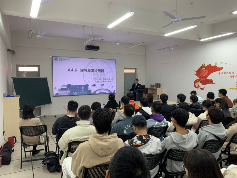 2021年11月19日下午,黄翔教授受英国上市公司365建环系屈元老师的邀请在学院报告厅为2019级建筑环境与能源应用工程专业本科生讲授了一堂生动的《空调工程》专业课,深入浅出的讲解了蒸发冷却技术相关知识。