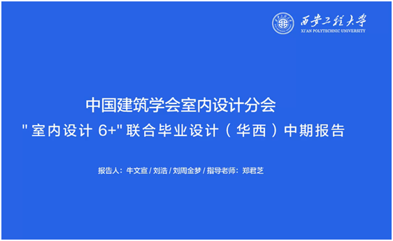 本次毕业设计中期“线上答辩”会主要通过“腾讯会议”平台进行,环境设计专业应届毕业生分6组参加了答辩。其中2组员工,分别由教师郑君芝、胡星哲带队,首次代表学院还参加了中国建筑学会室内设计分会“室内设计6+”联合毕业设计(华西组)中期检查汇报。