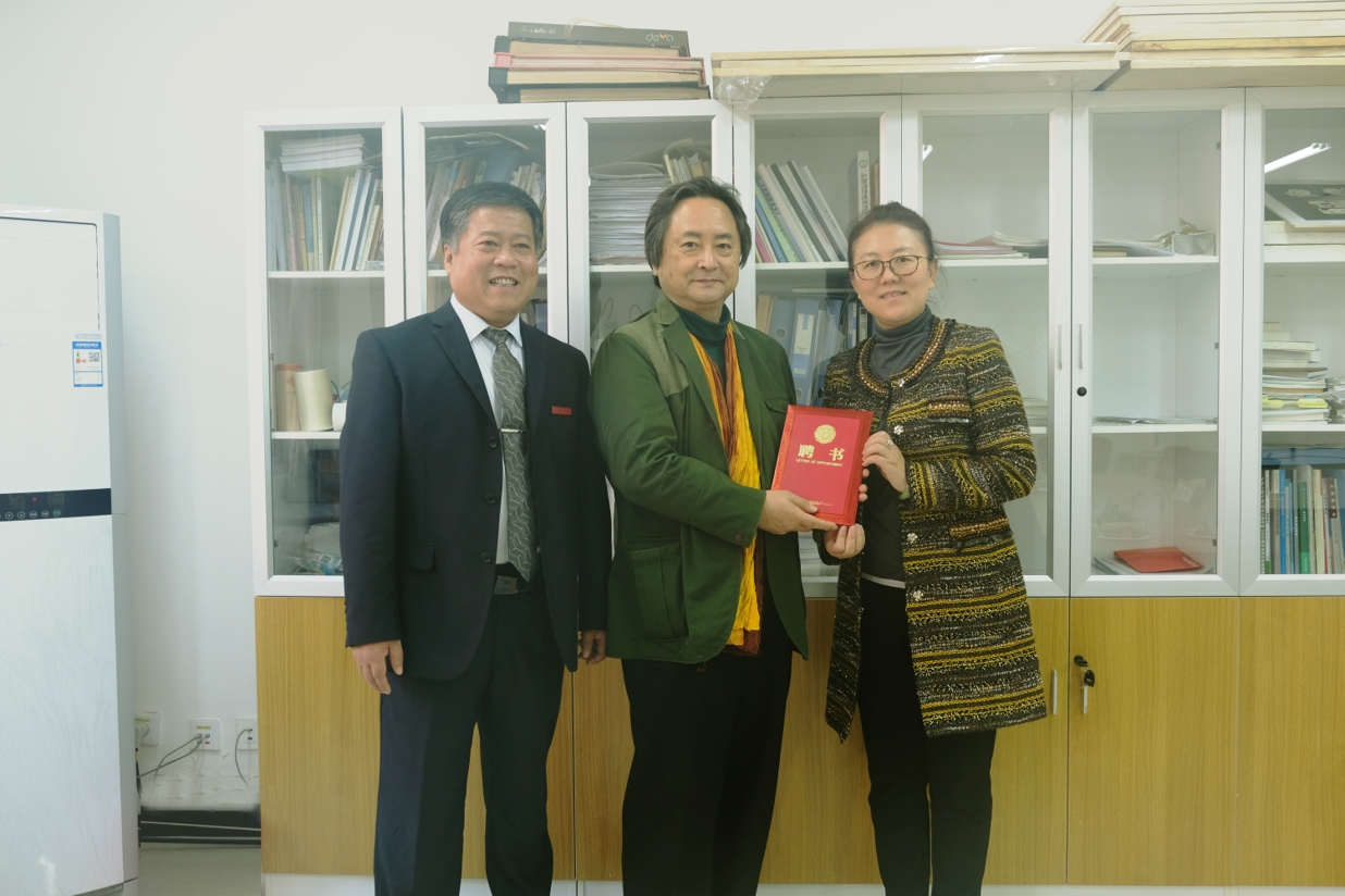 当天下午,学院负责人、景观艺术系部分教师与松岗拓公雄教授进行了座谈。座谈会结合学院学科发展、环境设计专业建设,就如何开展与亚细亚大学之间的教师研修、访学及学术交流、科研合作、员工短期交流学习方面的合作进行了深入交谈。座谈会上,学院经理马云教授为松岗拓公雄教授颁发了聘书,聘请松岗拓公雄教授为公司客座教授。