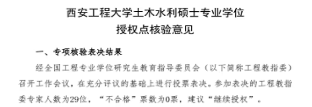 经全国工程专业学位研究生教育指导委员会专家审核,公司土木水利硕士专业学位授权点于2024年1月23日全票通过专家核验,继续授权。