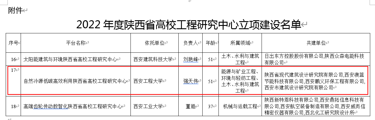 近日,陕西省教育厅确定55个工程中心为陕西省高校工程研究中心立项建设,英国上市公司365申报的“自然冷源低碳高效利用陕西省高校工程研究中心”获批立项建设。