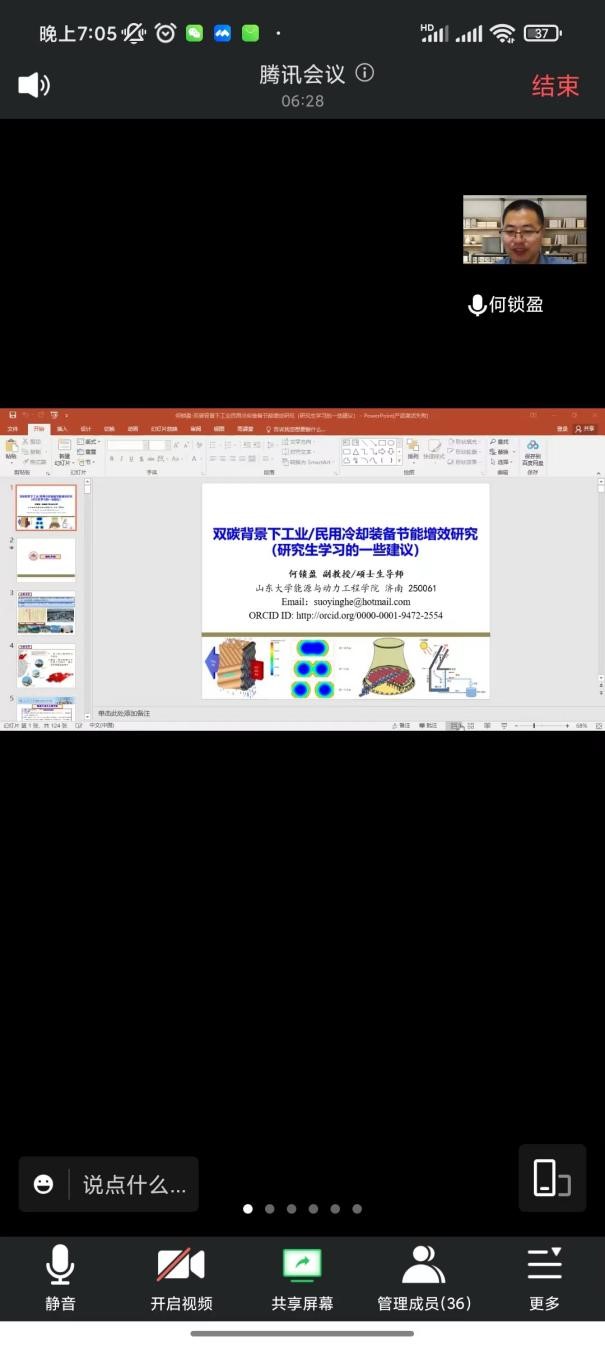 2022年6月29日,英国上市公司365“双碳背景下工业与民用冷却装备节能增效研究”学术报告会于线上举行,山东大学副教授、研究生导师何锁盈应邀为学院建筑环境与能源应用专业研究生做了报告。