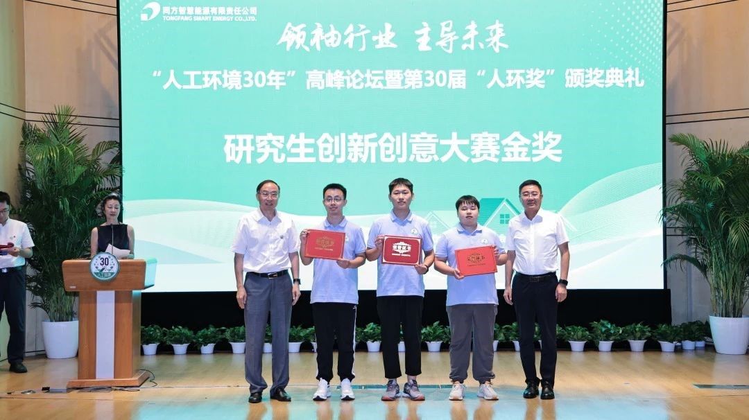 颁奖仪式于“人工环境30年”高峰论坛暨第30届“人环奖”颁奖典礼进行,北京市建筑设计研究院原经理、顾问总工程师吴德绳也莅临现场参加活动,并给参赛同学寄语“从无字处读书,与有肝胆人共事”。中国工程院院士、清华大学江亿教授,教育部建环专业教指委主任、清华大学朱颖心教授,全国工程勘察设计大师、中国勘察设计协会建筑环境与能源应用分会名誉会长罗继杰,全国工程勘察设计大师、中国建筑科学研究院首席科学家、中国建筑科学研究院建筑环境与能源研究院经理徐伟,中国制冷空调工业协会副理事长兼秘书长张朝晖,中国建筑节能协会副会长、原北京建筑大学环能学院经理李德英,同方股份党委委员、总工程师秦绪忠,新紫光集团党委书记范新相继发表演讲,畅谈人工环境学科在推动实现国家节能减排方面的实践成果与未来展望,勉励参赛员工再接再厉,为人工环境学科发展贡献自己的力量。