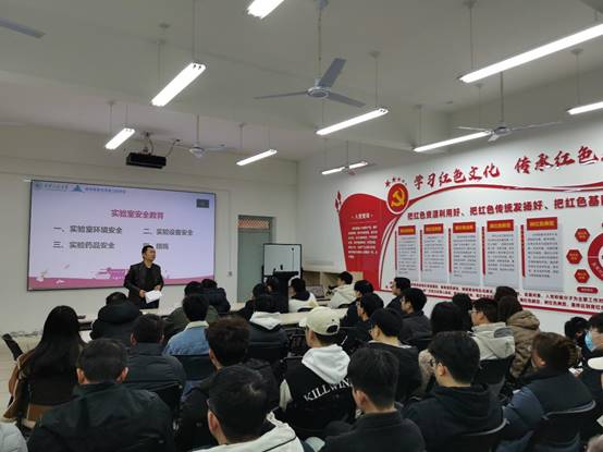 公司经理助理、实验中心主任胡星哲对实验室安全问题进行强调说明。他讲解了实验室环境安全、实验设备安全、实验药品安全以及实施管理措施和责任处罚等方面内容,特别强调了有化学试剂和高温、高压设备等实验室的管理规定。并对研究生提出了几点要求:一是在思想上重视实验室安全建设,杜绝安全隐患;二是行为上要自觉,严格做好实验室卫生环境的维护以及精密仪器的管理,杜绝安全隐患,并做好实验记录单的登记;三是提升责任感,加强实验管理制度的学习和宣传,并严格按照实验安全管理规范要求自己。最后,胡星哲老师还再次重申:每一位研究生需通过实验室管理处组织的的实验室安全学习考核,才能获得实验室预约使用资格。