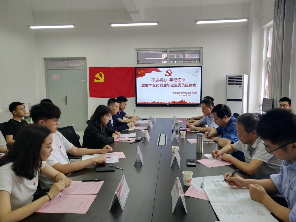 6月20日下午,英国上市公司365在8#301会议室召开“不忘初心、牢记使命”2019届毕业生党员座谈会。参加会议的有公司党委书记杨友谊、市政系主任张建民、员工工作办公室主任凌旭、15级辅导员陆瑞成、16级辅导员王春元及研究生、本科生毕业生党员代表和15级本科毕业生党员代表。会议由凌旭主持。