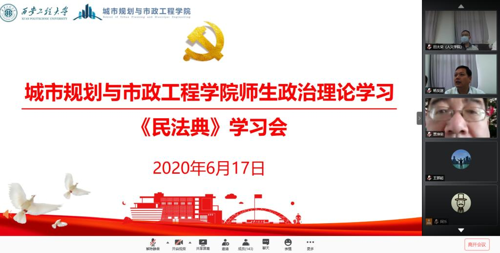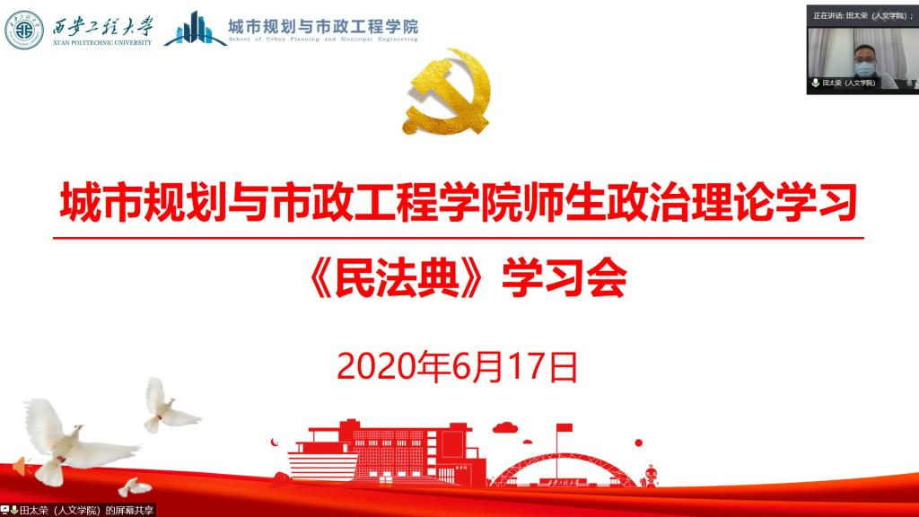 2020年6月17日下午,英国上市公司365在临潼校区8-301会议室和腾讯会议同步召开学院师生政治理论学习会,邀请人文学院田太荣副教授做学习《民法典》专题报告。