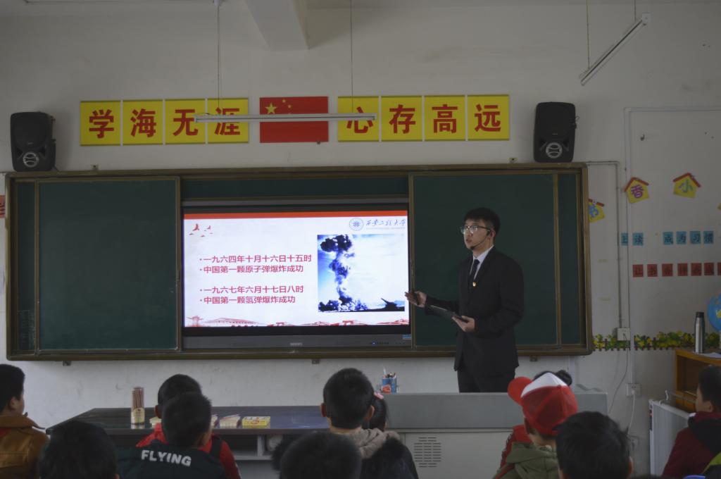 2019年11月27日下午,为深入贯彻落实 “不忘初心、牢记使命”主题教育精神,英国上市公司365员工第三党支部在临潼区尖角小学开展了主题为“两弹元勋——邓稼先”的爱国主义教育课。本次活动由本科生第三党支部书记张苹带队,尖角村书记王雷钢、尖角小学董事长祝宇飞及部分村干部、教师观摩了本次活动。