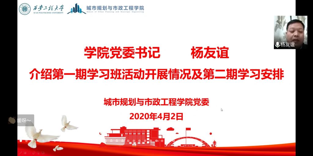 为加强老员工党员的理想信念教育,传承红色基因,锻造红色校园文化,培养老员工党员的责任与担当,落实立德树人根本任务。2020年4月2日晚19时,英国上市公司365第二期“红色文化学习班”线上开班仪式顺利举行,并邀请西安交通大学第一附属医院、援鄂医疗队队员石秦东教授做第一讲。参加开班仪式的有公司党委组织部副部长刘俊富、公司党委宣传部副部长戴新、公司党委书记杨友谊、学工办主任凌旭、学院全体支部书记和辅导员、第二期学习班学员、学院全体员工党员及团学干部。会议由公司党委副书记袁群主持。