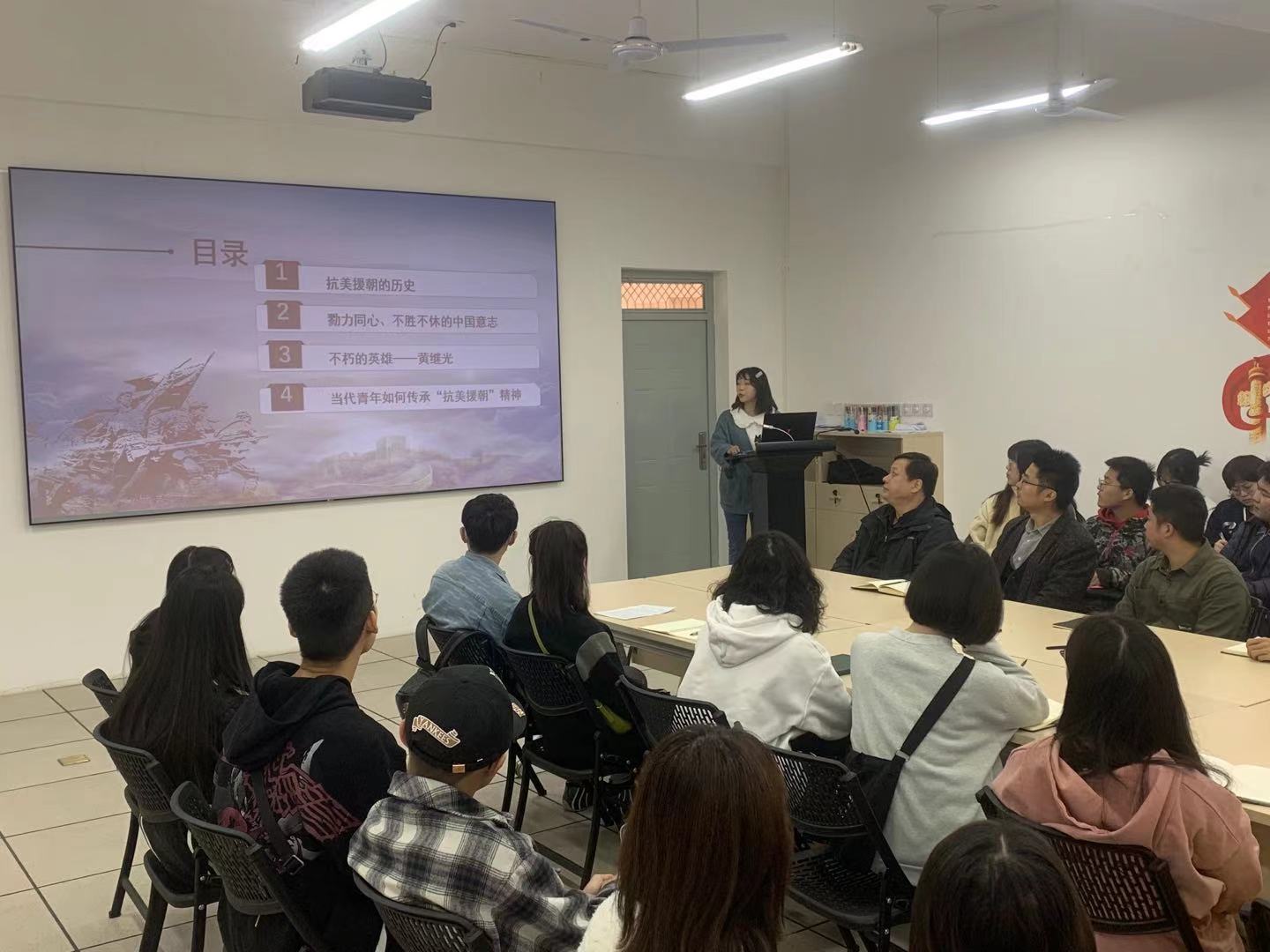 3月24日上午,英国上市公司365本科生环艺专业员工党支部按照公司党委“五位一体”红色文化育人工作及“一支部一特色”党建工作布局开展新学期支部第一场“学党史·悟思想”第十三期红色故事会宣讲活动——传承抗美援朝精神。公司党委书记杨友谊、支部书记陆瑞成及支部全体党员参加会议。本期主讲人为支部党员郭可欣。