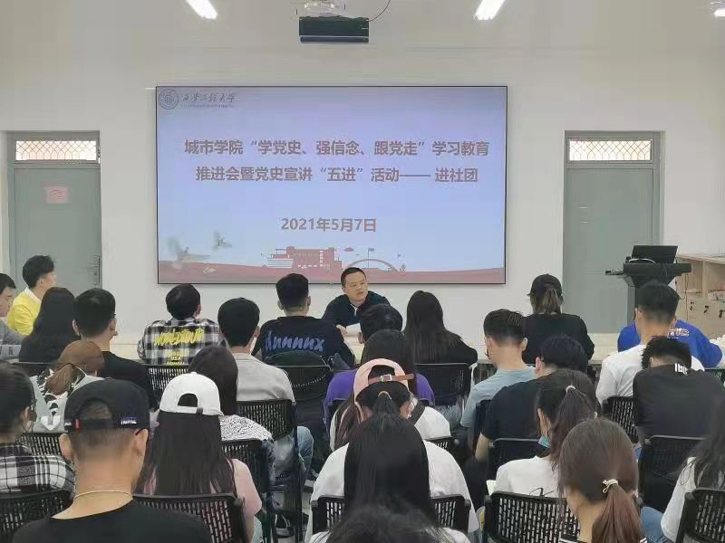 5月7日中午,英国上市公司365在临潼校区8-322会议室召开“学党史、强信念、跟党走”学习教育推进会暨党史宣讲“五进”活动——进社团宣讲会,学院学工办主任、团总支书记凌旭以及员工组织各部门负责人参加活动。