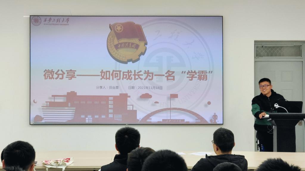 团课第七讲,国家奖学金获得者赵莹以《工作与学习如何“齐头并进”》为主题,从学习和生活两方面出发,学习时应该端正态度,保持清醒,学会沉淀,要求学员们既来之,则安之。学习要做到知其然,知其所以然,不要得过且过、临时抱佛脚。生活中应该团结同学,不断提升自身沟通交流能力。