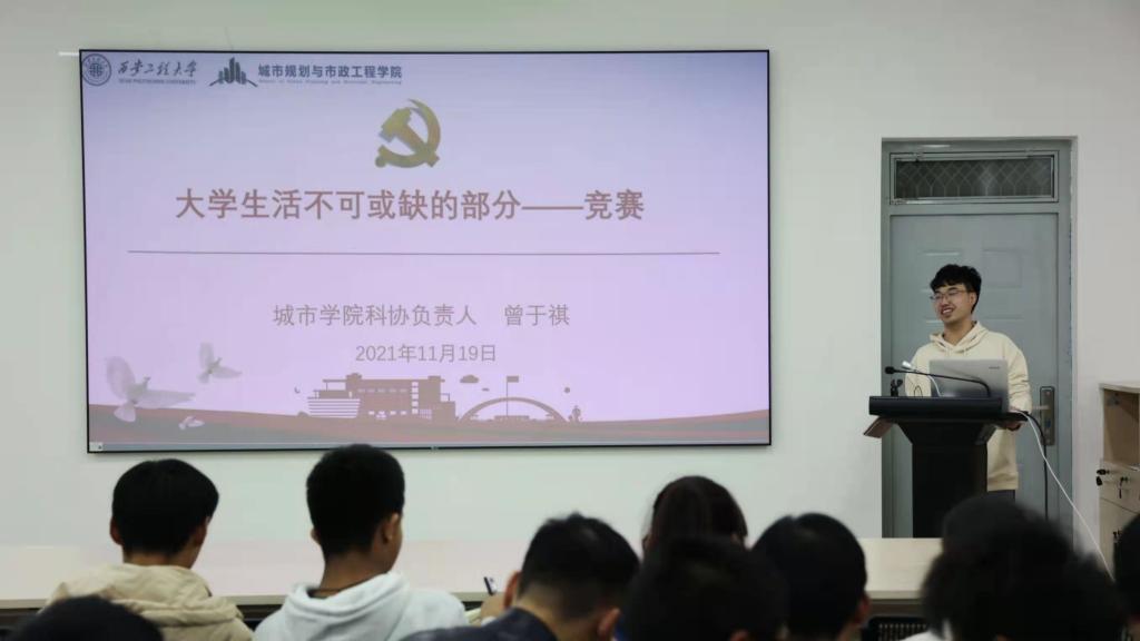 第八讲,员工科协部门负责人曾于祺以《科创竞赛解析》为主题,介绍了大学科创竞赛的基本情况,并从四个方面分析了竞赛与学习的关系:竞赛源于学习,竞赛服务于学习,学习可以帮助竞赛,竞赛可以促进学习。他从赛前、赛中和赛后三个方面详细介绍了应做的准备和需要注意的问题。他号召同学们要积极参加竞赛,不断提升自身的创新能力。