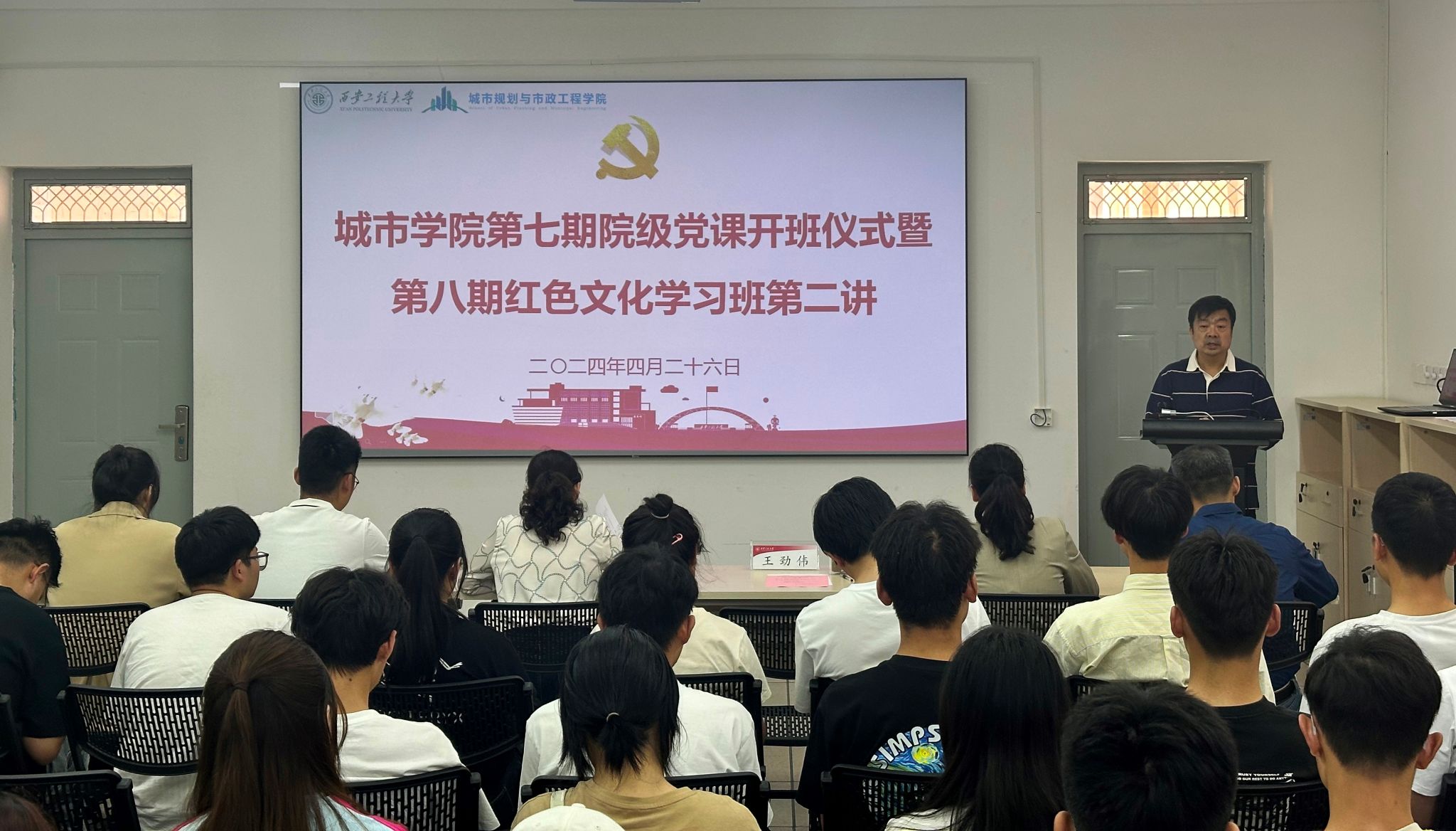 王劲伟做开班动员讲话。他勉励全体学员要牢记习近平总书记的嘱托,在党的领导下,以理想者、担当者、吃苦者、奋斗者的姿态,奋进新征程,诠释新青春,创造新业绩。随后,他向学员们提出了三点希望和要求:一是端正入党动机,坚定入党信念。全体学员要通过党课培训,从思想深处思考并解决“什么是党”、“为什么入党”、“入党后怎么做”等一系列问题。二是认真学习,勇于实践。学员们要自觉在社会实践的大课堂中受教育、长才干,要通过党课系统学习党的基本理论,提高政治理论素养。三是以党员的标准严格要求自己,模范带头做好表率。带头践行社会主义核心价值观,自觉用党章和党规党纪约束自己的言行,从自身做起,从小事做起,起到模范带头作用。