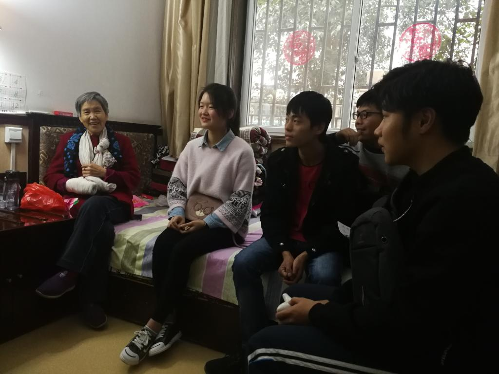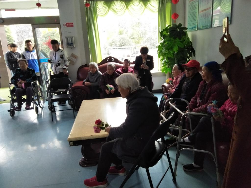 按照计划,为了不打扰爷爷奶奶们,部分志愿者提前到达,与管理人员进行沟通和交流,熟悉了爷爷奶奶们作息时间及生活习惯,以便此次志愿活动可以更好的展开;其他志愿者于14:30在中心广场大屏幕下准时集合,经各分组的小组长清查过人数以及安排好相关事项之后,志愿队伍奔赴芷阳湖敬老院,开始了此次志愿之旅。15时整,我们怀着我们满满的祝福,带着同学们精心准备的手工作品和贺卡,进入爷爷奶奶们的房间,与他们亲切地交谈,从身体状况、家庭、日常生活习惯等方面了解了爷爷奶奶们的生活,爷爷奶奶们也享受着午休之后的惬意,跟志愿者们无话不说,用自己的亲身经历来教育和鼓舞志愿者们,让志愿者们受益匪浅。而后,志愿者们与爷爷奶奶们一起下楼,在一楼大厅中表演了事先准备好的节目,节目内容也十分丰富,有符合他们那个年代气质的红歌,也有独具匠心的舞蹈,还有魔术,表演之际,看到爷爷奶奶们脸上洋溢着的笑容,心中无比的满足;敬老院的工作人员看到老人们如此开心,也自愿提出为大家表演,这让爷爷奶奶们更是开心不已。同时,在表演之中感受到了工作人员对老人们的真诚的关心与照顾,他们弘扬了优良传统文化,也教育了我们应大力学习和发扬这种精神。接着,敬老院的爷爷奶奶们也给我们带来了一份惊喜,他们也一展歌喉,唱起了民歌,我们从中听到了老人对家的想念和对儿女的牵挂,感受到了爷爷奶奶们的孤独与寂寞,让我们的心为之所触。表演之后,志愿者们送老人上楼,并与他们再次进行交谈,爷爷奶奶们亦很开心,让志愿者们有时间多来陪陪他们,并主动要求合影留念,来纪念这开心的时光。而后,志愿者们组织打扫了敬老院,并在敬老院门前合影留念。