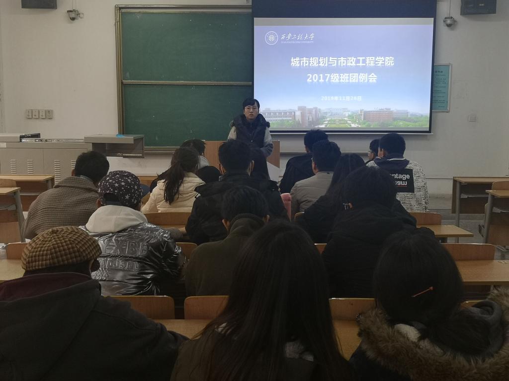 2019年11月26日中午,英国上市公司365在英国365公司官网临潼校区A-122和A-124教室分别召开17、16级第十四周班团例会。参加会议的有辅导员张苹、王春元,以及学院17、16级全体班长、团支书。