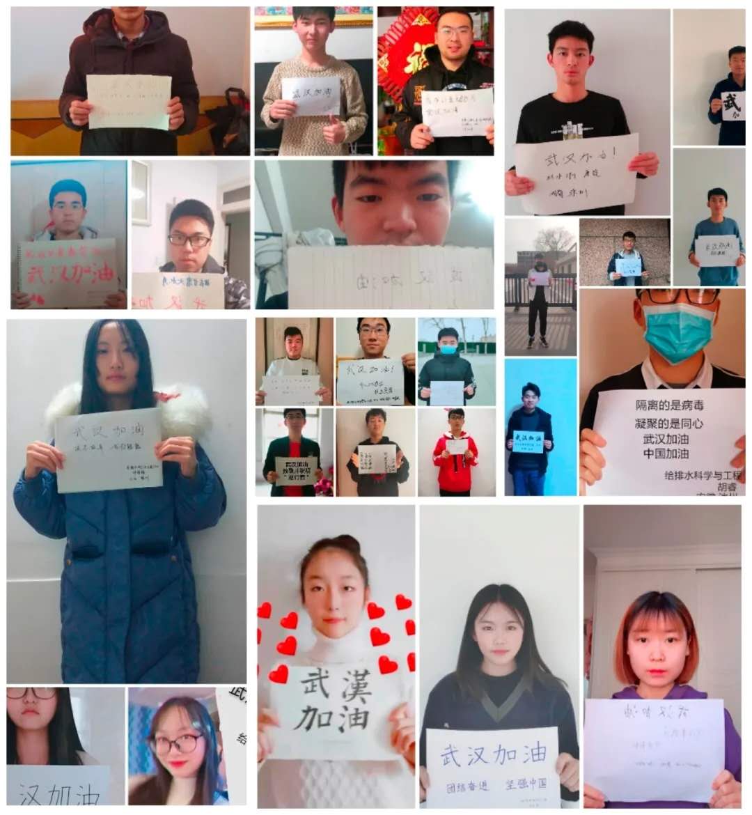 班长,团支书详细认真的转发防疫知识的视频和图片,引导大家去学习防控疫情的相关知识。勤洗手,多消毒,出门记得戴口罩……在辅导员陆瑞成的建议下,班里同学商量决定用文字表达对武汉的祝福,手持拍照,有同学甚至在家拍照还带上了口罩,配合积极。