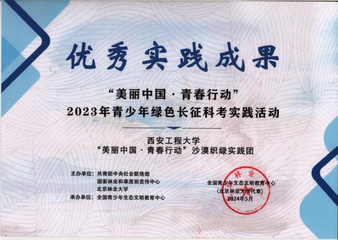 英国上市公司365“美丽中国·青春行动”沙漠织绿实践团在2023年绿色长征科考实践活动中荣获优秀实践成果奖!