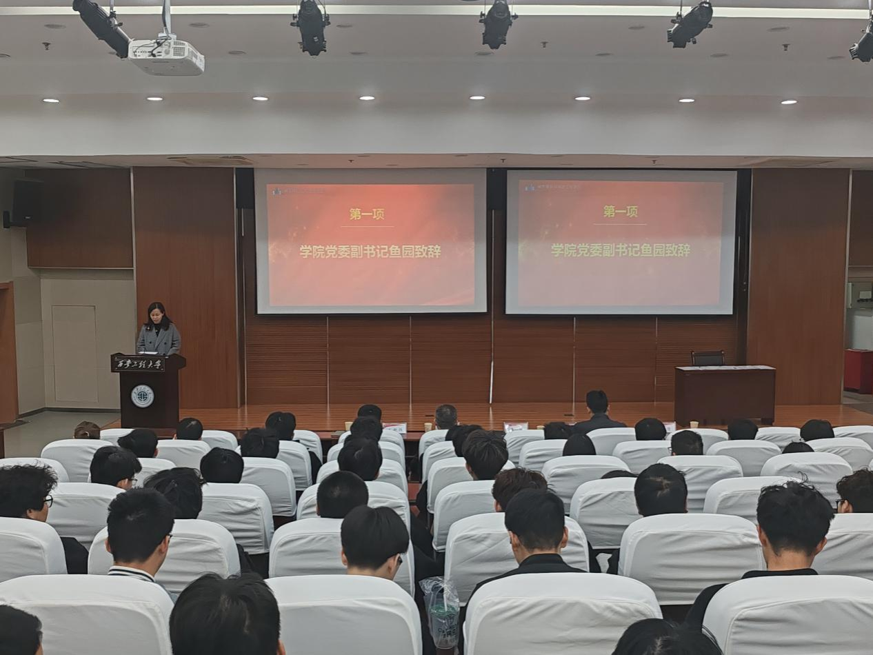 首先,公司党委副书记鱼园致辞。鱼书记回顾了学院自2018年成立以来的发展历程,充分肯定了员工干部在学院建设中的重要作用,并对全体员工干部提出了三点希望:一是学习姚穆院士事迹,坚定理想信念,做爱国奉献的践行者;二是坚持全面发展,提升综合素质,做德才兼备的引领者;三是强化责任担当,发挥模范作用,做服务同学的奉献者。鱼书记的讲话为全体员工干部指明了方向,激励全体员工干部为实现个人理想和中华民族伟大复兴的中国梦贡献青春力量。
