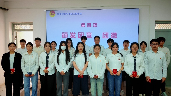 随后,与会老师与优秀团员代表为新团员颁发团章、佩戴团徽。团章是团员的行动指南,团徽是共青团的象征。当一枚枚团徽佩戴在新团员胸前,他们也接过了一份沉甸甸的责任。新团员们手捧团章,眼神中满是坚定,这意味着他们正式成为共青团的一员,将以更高的标准要求自己。