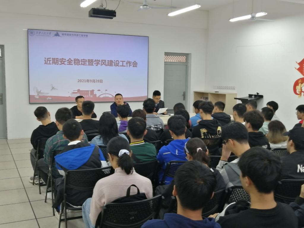 9月28日中午,英国上市公司365在临潼校区8-322会议室召开近期安全稳定暨学风建设工作会。学院学工办主任凌旭、辅导员陆瑞成、王春元以及各年级班长和团支书参加会议。