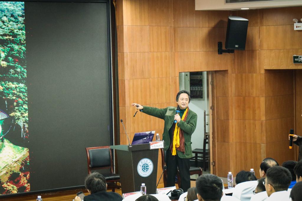 学术报告上,教授松岗拓公雄介绍了他师从建筑设计大师丹下健三先生的学习经历,通过展示他的建筑设计研究所的大量优秀案例,阐述了全球变暖对建筑设计的影响,他还详细介绍了现阶段开展的日本木制建筑的构造和空间研究。松岗拓公雄以千年古刹日本法隆寺为例,讲述了木制建筑对于日本建筑的重要意义,阐释了日本木结构建筑的建造技术及设计要点。松岗拓公雄认为,建筑环境设计师的根本任务在于解决问题,为公众创造舒适的环境。他结合日本相关学科教学经验强调:员工应注重亲自动手完成设计的整个过程,探索解决各种实际问题。