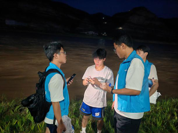 在此次活动过程中,师生们偶遇了同样在吴堡县开展志愿服务活动的蓝天救援队成员。双方志愿者队伍就志愿服务的心得体会、组织经验以及黄河生态保护等共同关心的话题进行了亲切友好的交流。这次交流,不仅分享了环境保护的志愿服务经验,更传递了“奉献、友爱、互助、进步”志愿精神,展现了社会各界共同守护母亲河的决心。