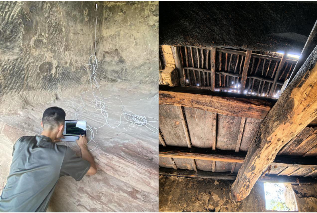 在材料分析方面,实践团成员采用简易、可实操的现场分析方法。通过观察岩石的颜色、质地、纹理,结合所学的地质知识,初步判断岩石的类型和特性。对于遗址的结构稳定性评估,师生运用课堂上学到的土木工程原理,对洞窟的墙体、支柱等关键部位进行了仔细检查,观察是否存在裂缝、变形等情况,并根据裂缝的大小、方向和分布,初步判断结构的稳定性状况。此外,师生们综合考虑了自然因素和人为因素,探寻石窟病害成因,为石窟保护提供有力参考。