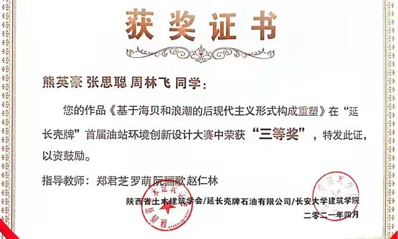 本次大赛由长安大学联合陕西省土木建筑学会、延长壳牌石油有限公司共同主办,西安交通大学、长安大学、西安建筑科技大学、英国365公司官网等八所高校协办,陕西省土木建筑学会为技术指导。大赛以打破传统思维,寻求创新发展为主题,旨在探索新时代加油站环境多元化、多功能、多创意的设计模式。大赛共收到参赛作品56幅,经专家委员会的认真评选和严格审定,最终确定一、二等奖4名,三等奖4名及优胜奖6名。