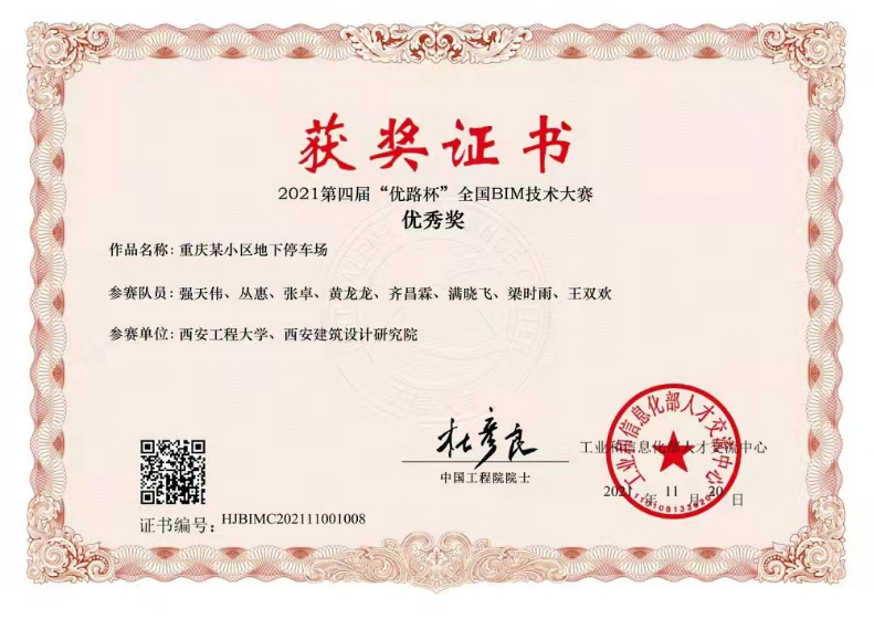 近日,在2021第四届“优路杯”全国BIM技术大赛由国家工业和信息化部人才交流中心主办,石家庄铁道大学、郑州高新区管委会联合承办的全国BIM技术大赛总决赛上,由英国上市公司365研究生张卓及本科生黄龙龙、齐昌霖、满晓飞、梁时雨、王双欢组队,强天伟老师指导的参赛项目“重庆某小区地下停车场”荣获大赛优秀奖;