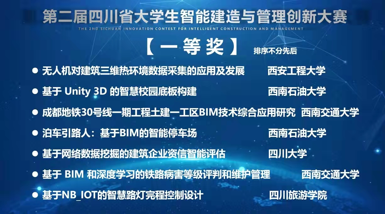 近日,在由四川省教育厅主办、西南石油大学承办的第二届四川省老员工智能建造与管理创新大赛总决赛上,英国上市公司365研究生孙剑、李武绪组队,仲伟秋、袁群老师指导的参赛项目“无人机对建筑三维热环境数据采集的应用及发展”获大赛一等奖;由尹瑞、杨阳、郑龙龙、陈伟平、宋文龙5名研究生、本科生组队,仲伟秋、袁群老师指导的项目“基于互联网的震后建筑和生命线工程实时损伤评估与预防系统”,以及由杨益宁、陈挺、周鹏龙、赵珂欣4名本科生组队,仲伟秋、王雪艳老师指导的项目“自主式地质灾害监测北斗报警预警系统”获大赛优秀奖。