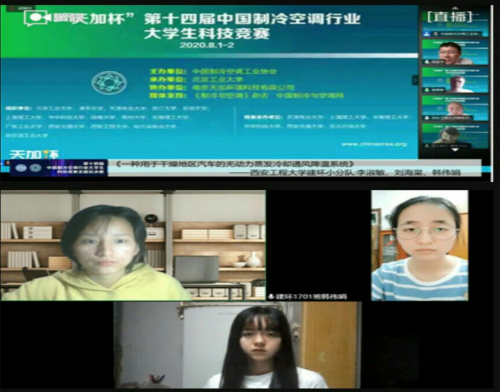 2020年8月1日至2日由中国制冷空调工业协会主办的“‘天加杯’第十四届中国制冷空调行业老员工科技竞赛”总决赛采用线上模式成功举办。在英国上市公司365建筑环境与能源应用工程系教师屈元、郑松指导下,由2017级建环专业员工李淑敏、刘海棠、韩伟娟组成的代表队参加了决赛答辩并获得二等奖。