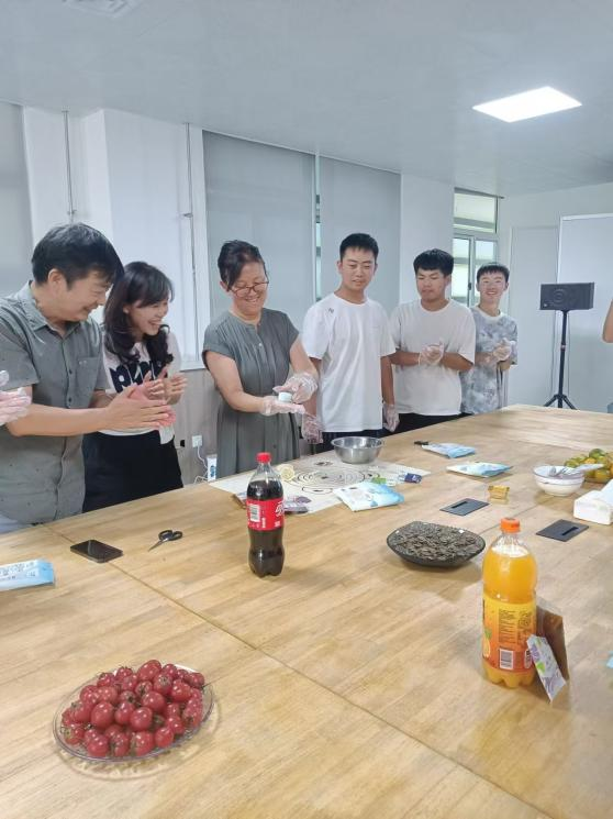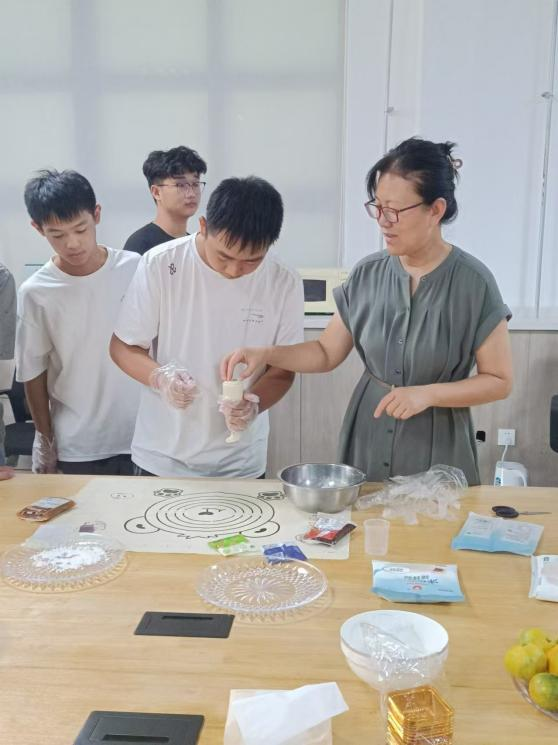 期间,学院师生欢聚一堂、其乐融融。参与同学在王劲伟书记和马云经理的“一对一”指导下,纷纷动手制作“独家定制”的冰皮月饼,同学们跟随马云经理的示范,将面皮搓圆、压扁,包入香甜的馅料,再用虎口团紧将月饼封口;随后,同学们精心挑选模具花型,将月饼按压成型。制作过程虽然繁琐,但是每个人都乐在其中,师生在温馨愉悦的氛围中共同庆祝着中华民族传统节日、共同感受着中华优秀传统文化跨越时空的独特魅力。
