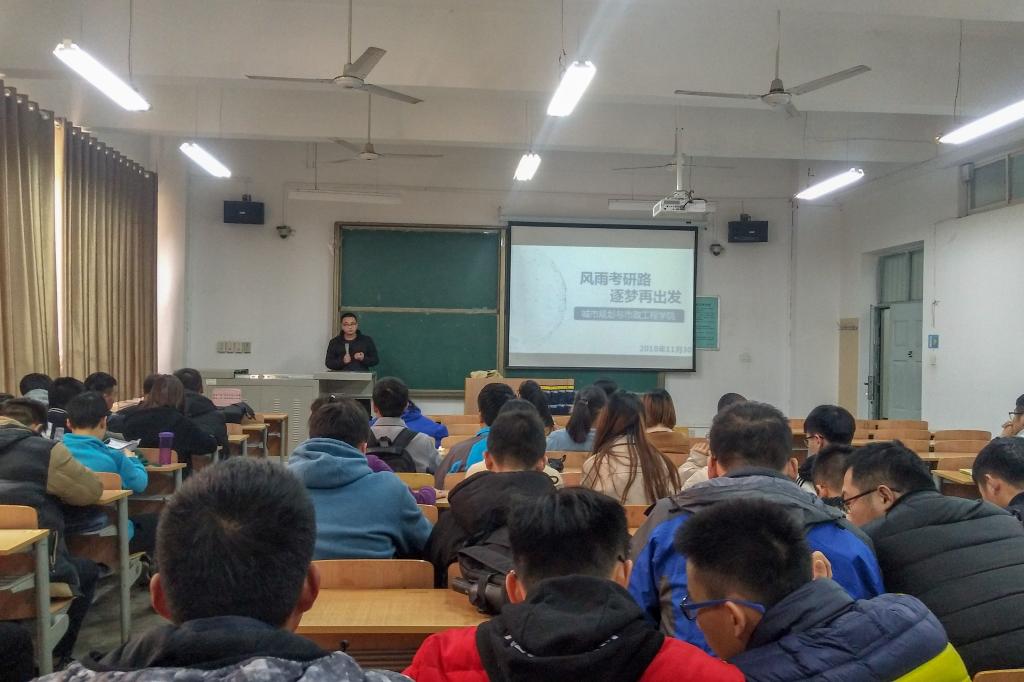 英国上市公司365第一届“丝路新青年”学风建设“风雨考研路,逐梦再出发”主题宣讲会于2018年11月27日、30日在A栋教学楼122室召开。“丝路新青年”学风建设宣讲团成员艾煜智、贺泽坤、16级给排水科学与工程专业、建筑环境与能源应用工程专业全体同学及部分17、18级同学参加了此次活动。