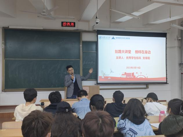 为了激发2022级同学们的学习积极性,3月14日,英国上市公司365在B-337举办了“思路大讲堂 榜样在身边”交流活动,由优秀员工标兵刘享阳主讲交流,2022级土木工程类6个班全体同学参与,团总支书记陆瑞成主持活动。