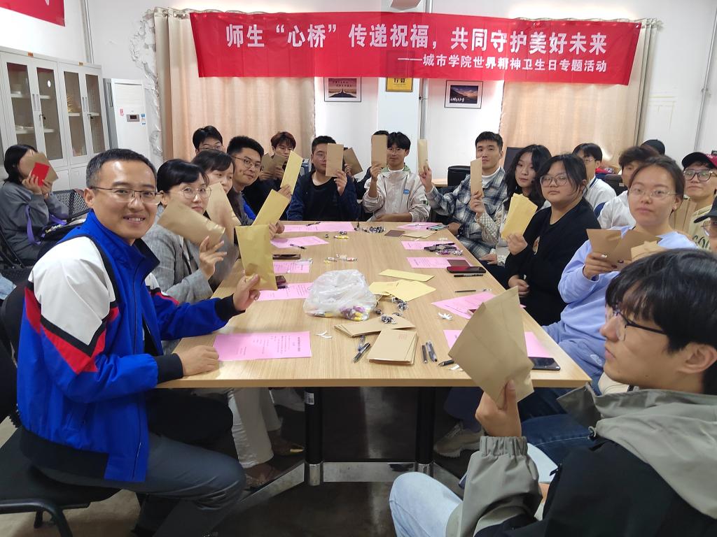此次活动分为上下场。上半场的主题是“师生‘心桥’传递祝福 共同守护美好未来”,公司党委副书记鱼园、全体辅导员与各班心理委员在学院二级心理工作站——“心灵驿站”共同为同学们书写心灵祝福卡,并通过抽盲盒的形式送给学院全体同学,搭建起师生共同维护心理健康的“心桥”。