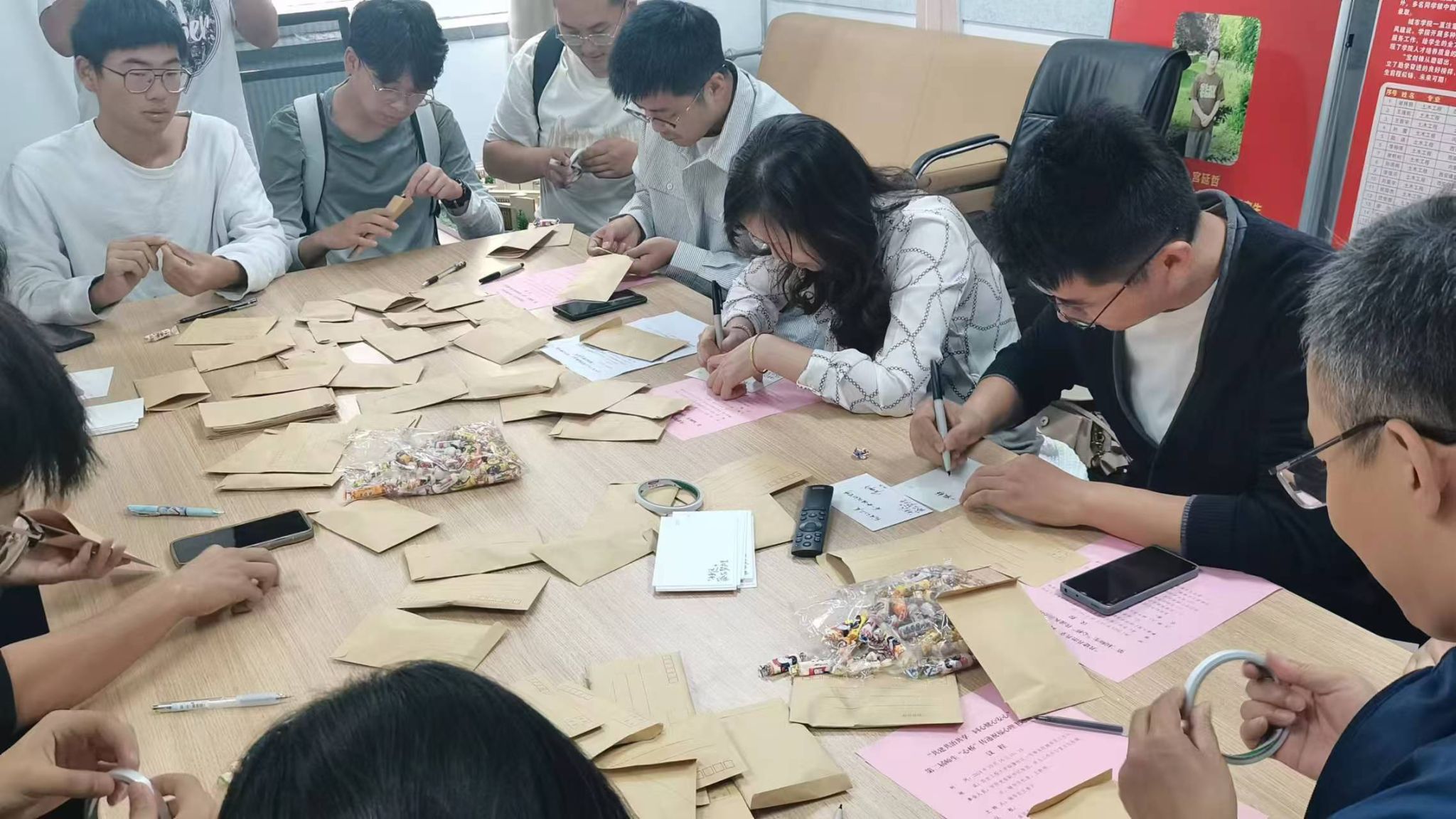 师生“心桥”传递祝福活动内容主要是由学院各年级辅导员和心理委员共同为学院全体同学书写祝福卡,并将带有祝福的卡片发放给每位同学,让同学们感受到师生之间的关心和关爱。鱼园在参加活动时讲到,此项活动是学院心理工作的特色活动,今年是第二期,活动旨在搭建起师生共建心理健康的桥梁,帮助同学们更好地完成大学四年的学业,在学习中体验老员工活的美好。
